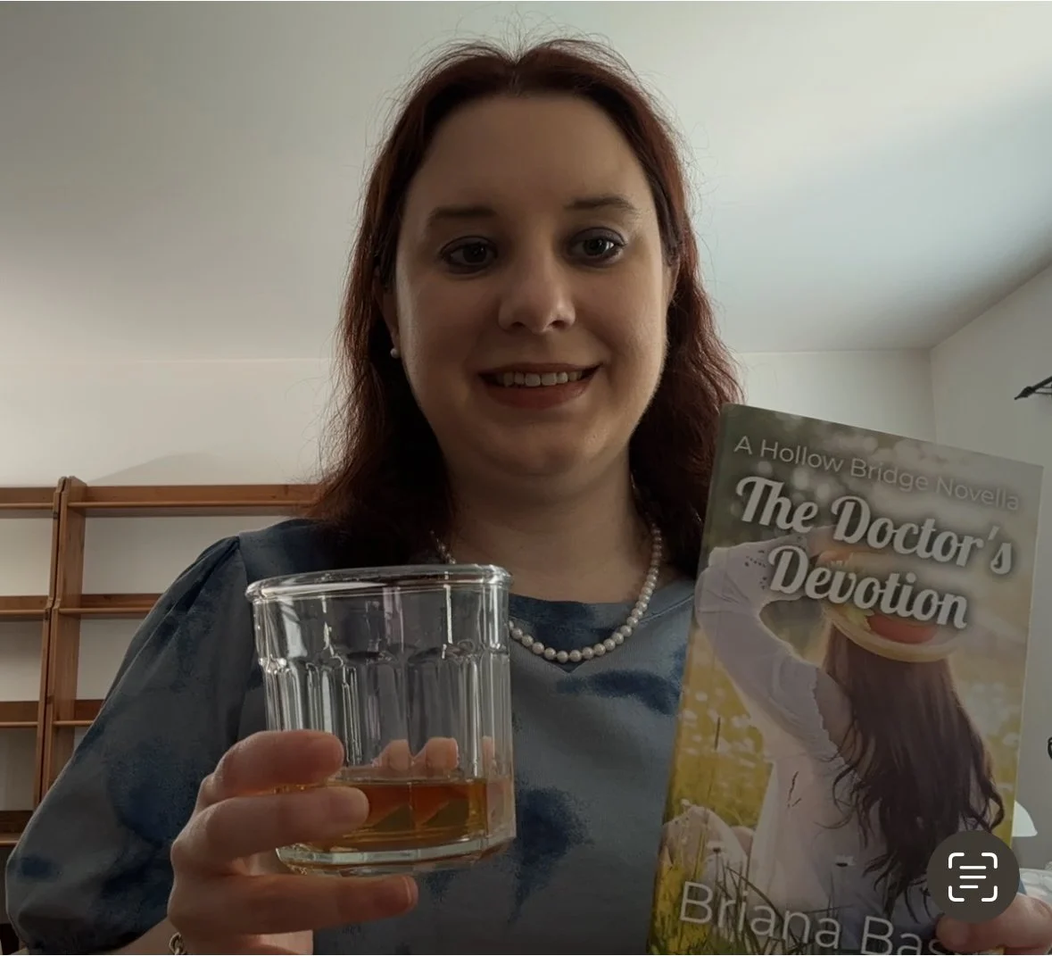 Author Briana Bass with her novel and a glass of Jack Daniels Honey Whiskey