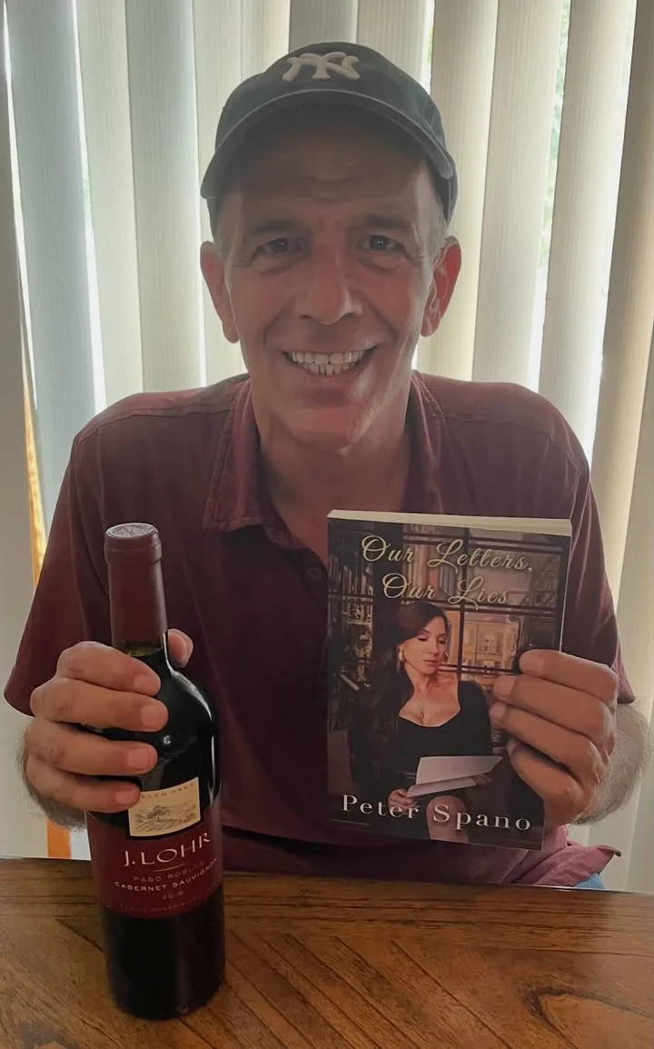 Author Peter Spano with his novel and a bottle of Cabernet Sauvignon